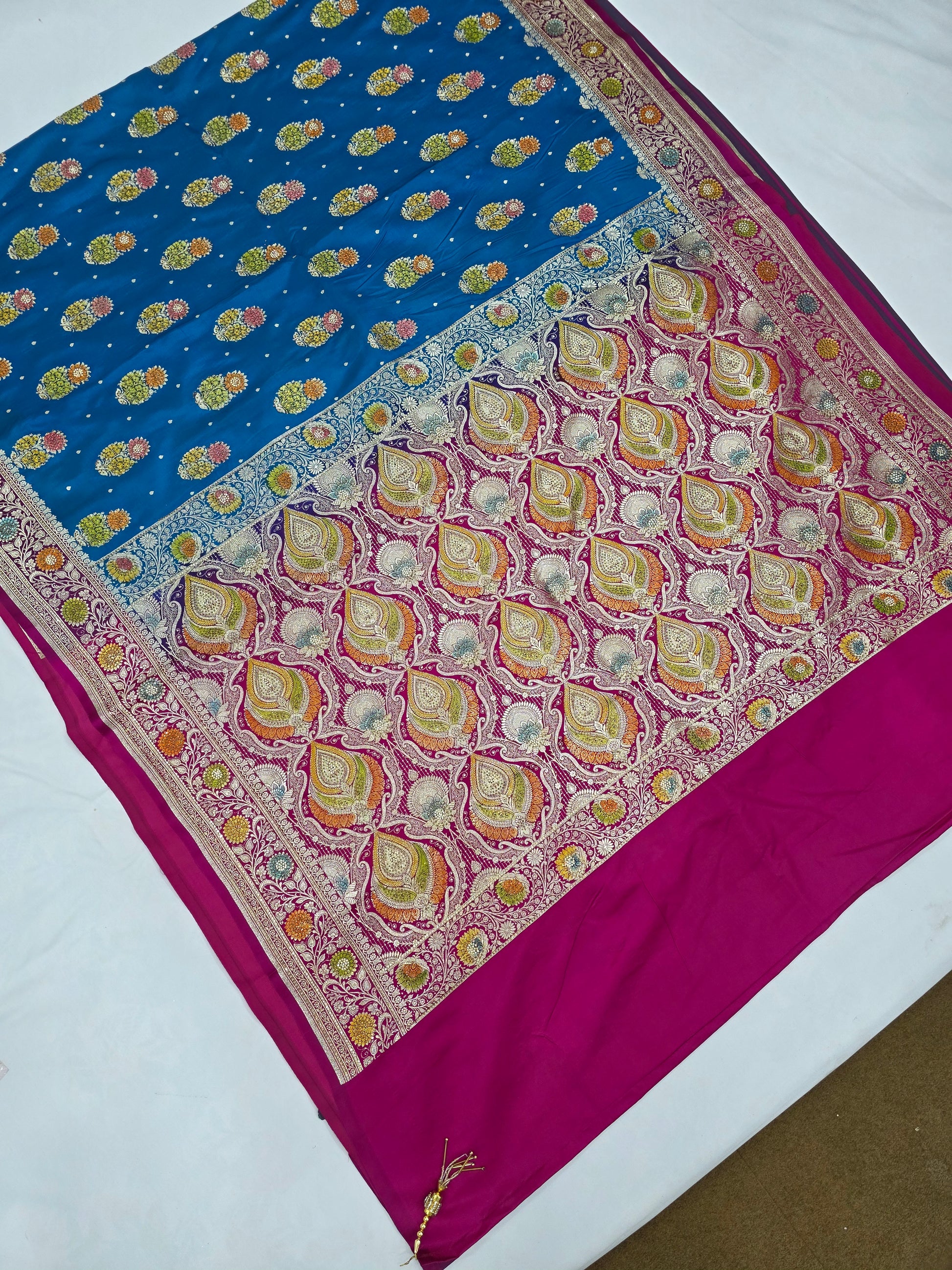 Firozi Blue Mina Kari Zarkan Swarovski Banarasi Saree
