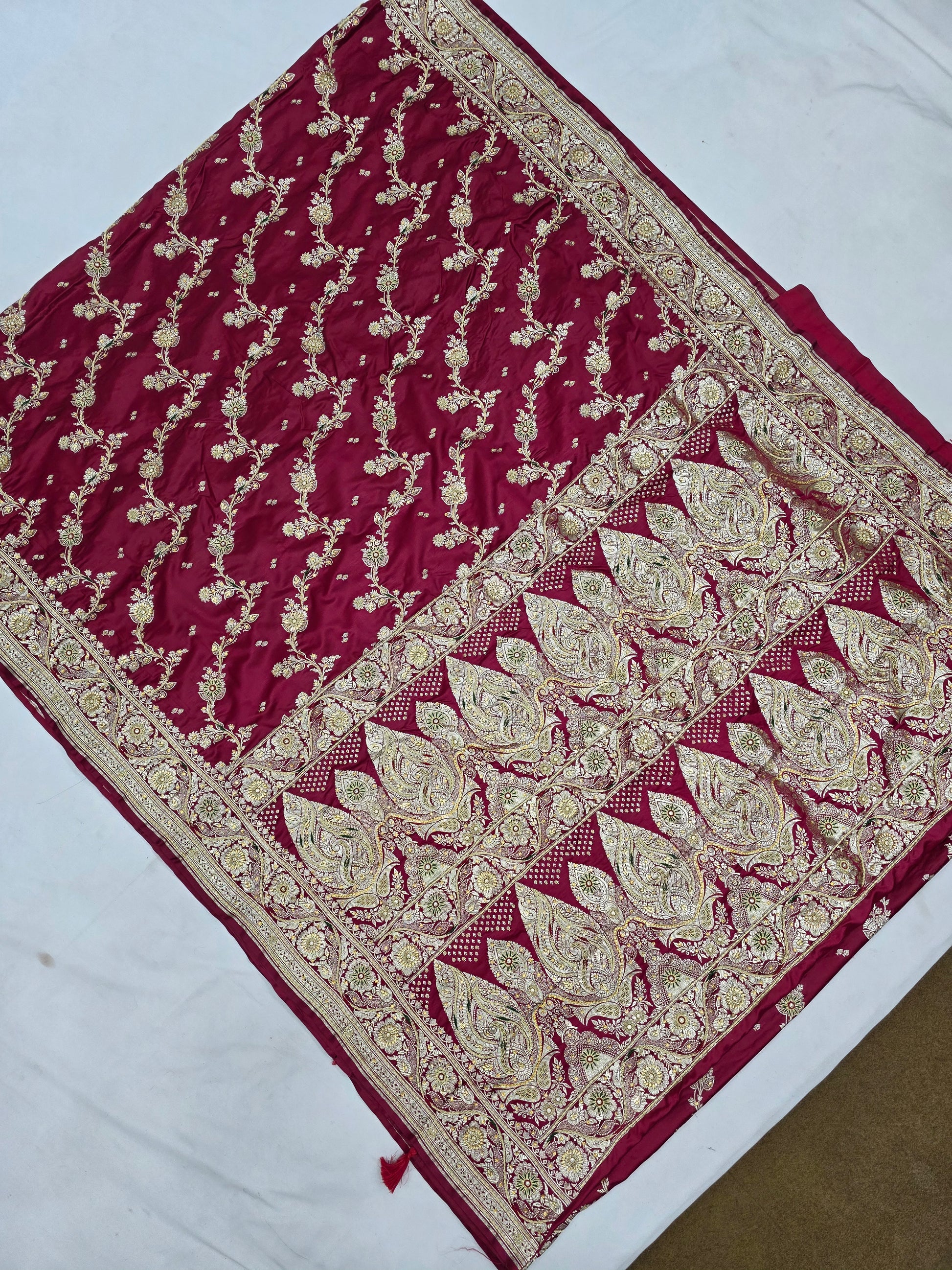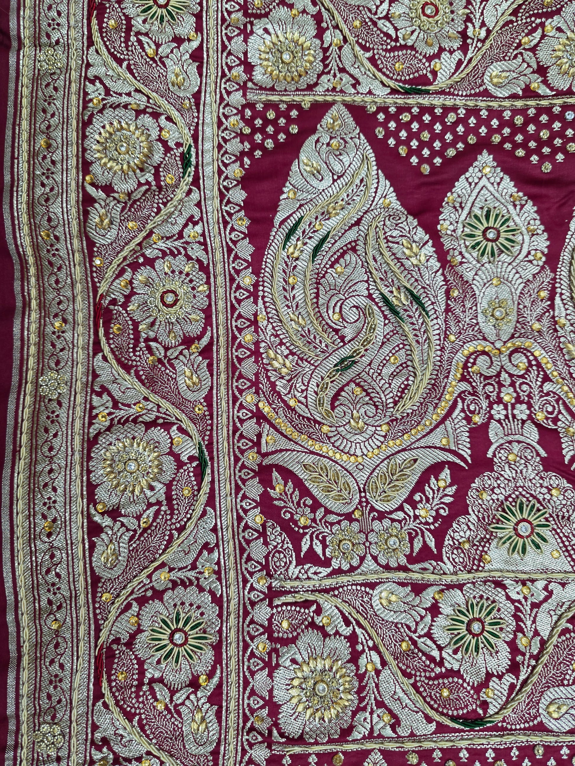 Maroon Zardozi Stone Banarasi Saree
