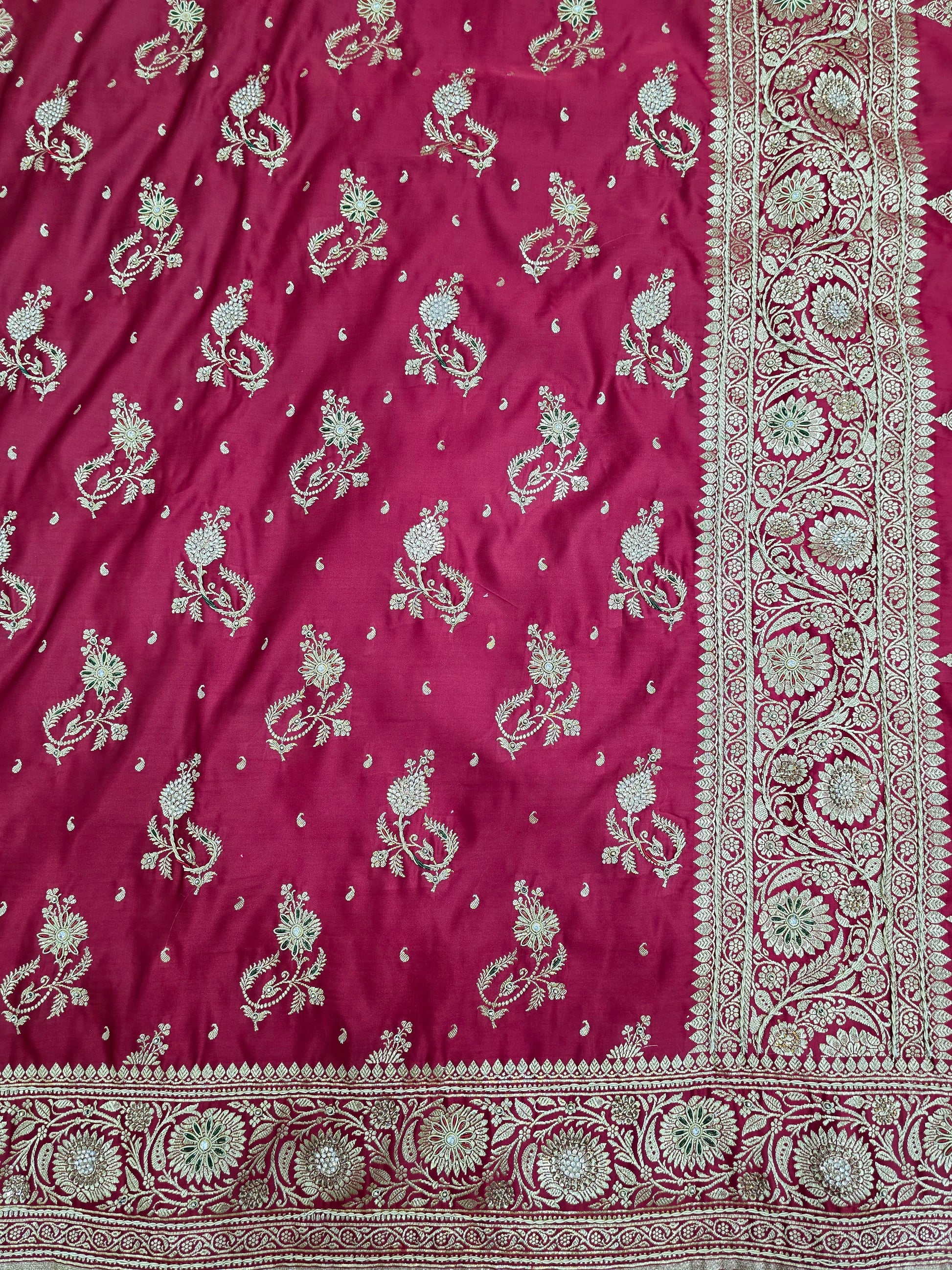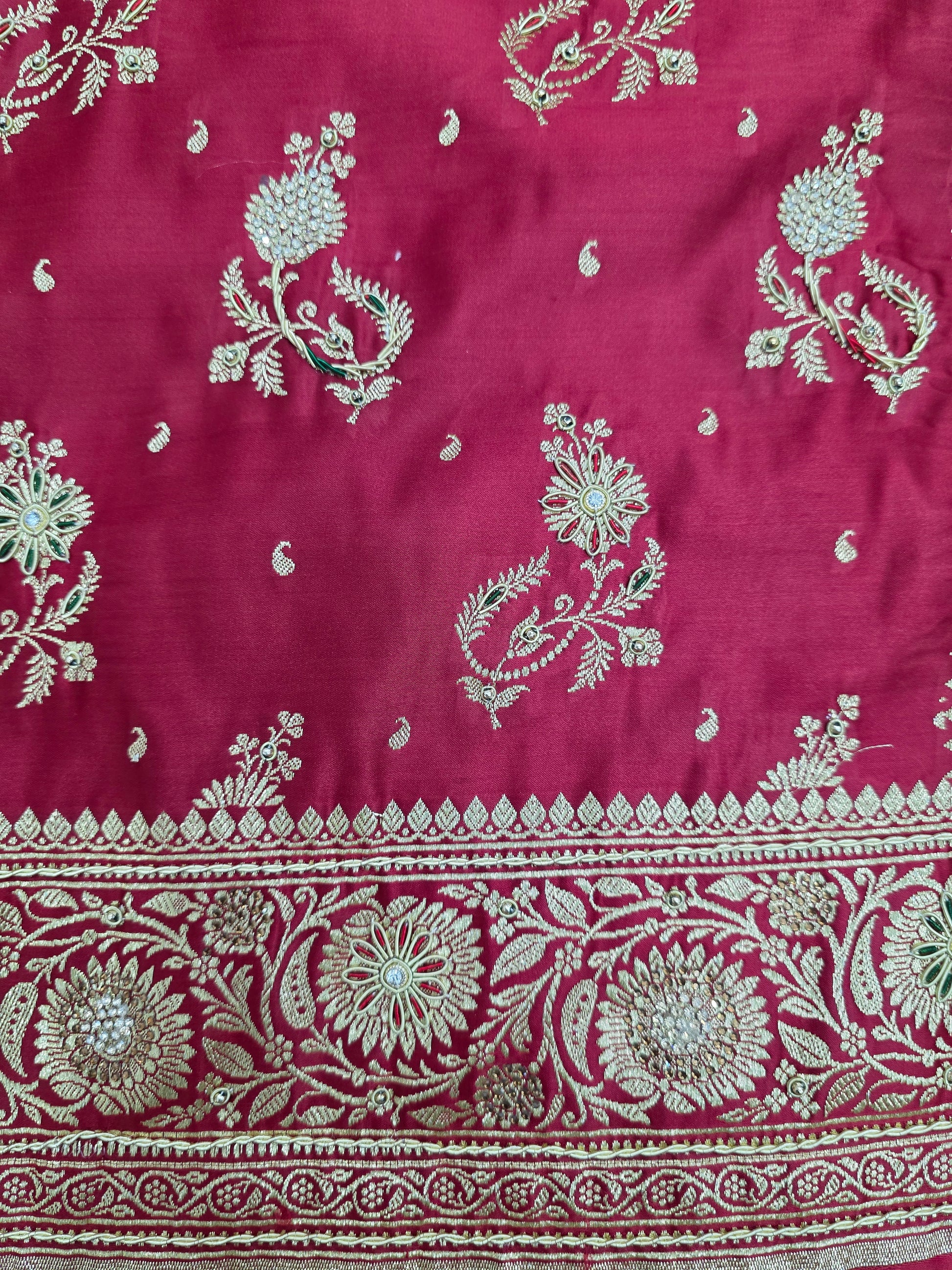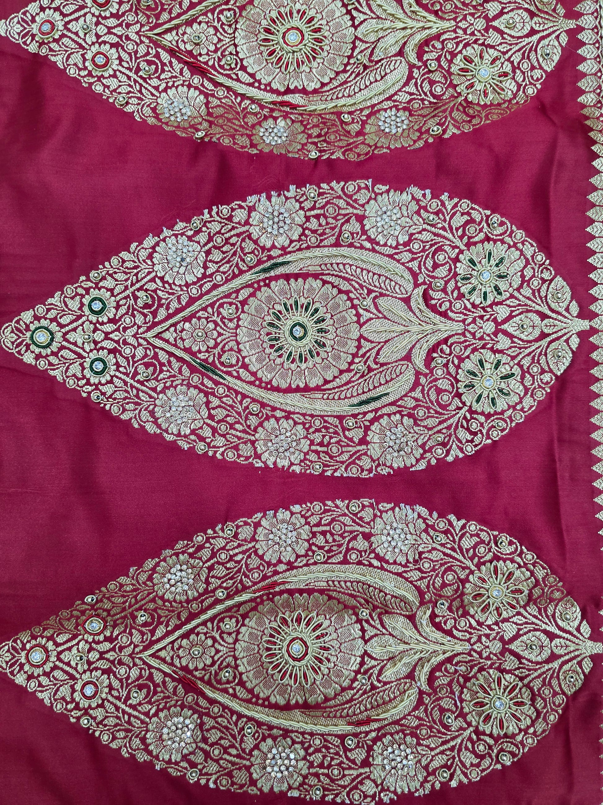 Maroon Zardozi Zarkan Banarasi Katan Saree