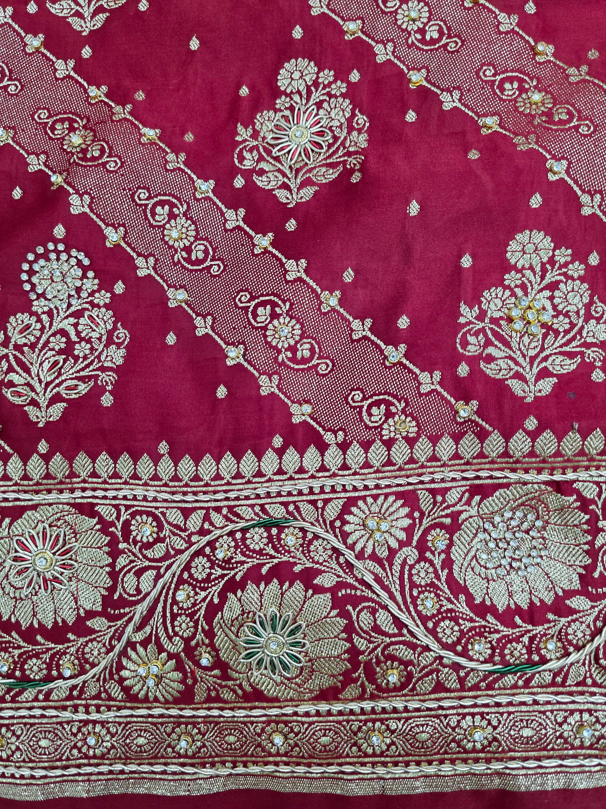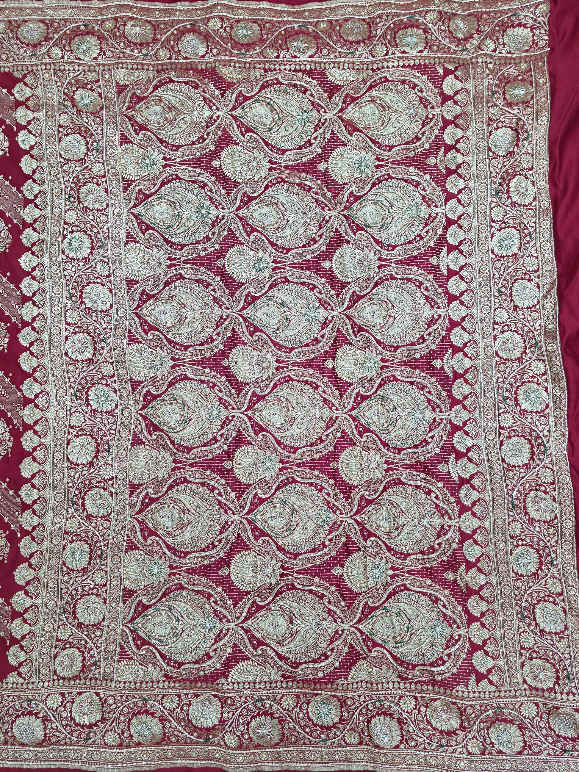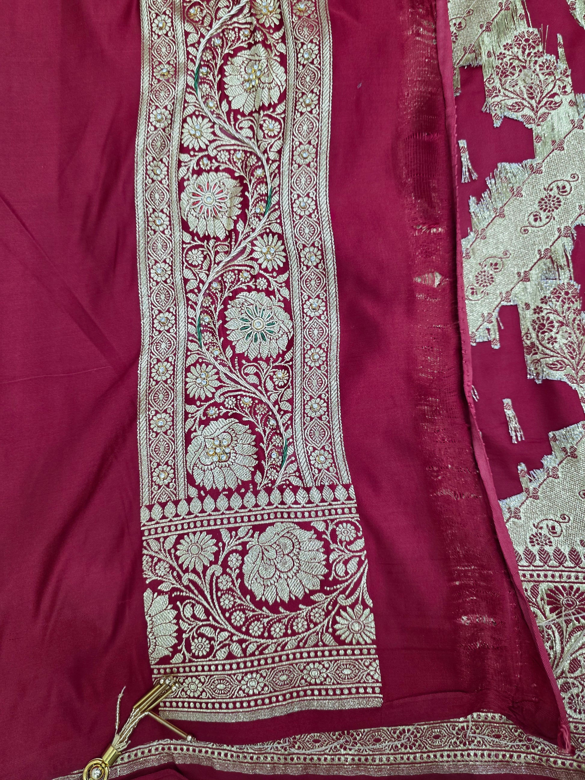 Maroon Zardozi Zarkan Banarasi Katan Saree