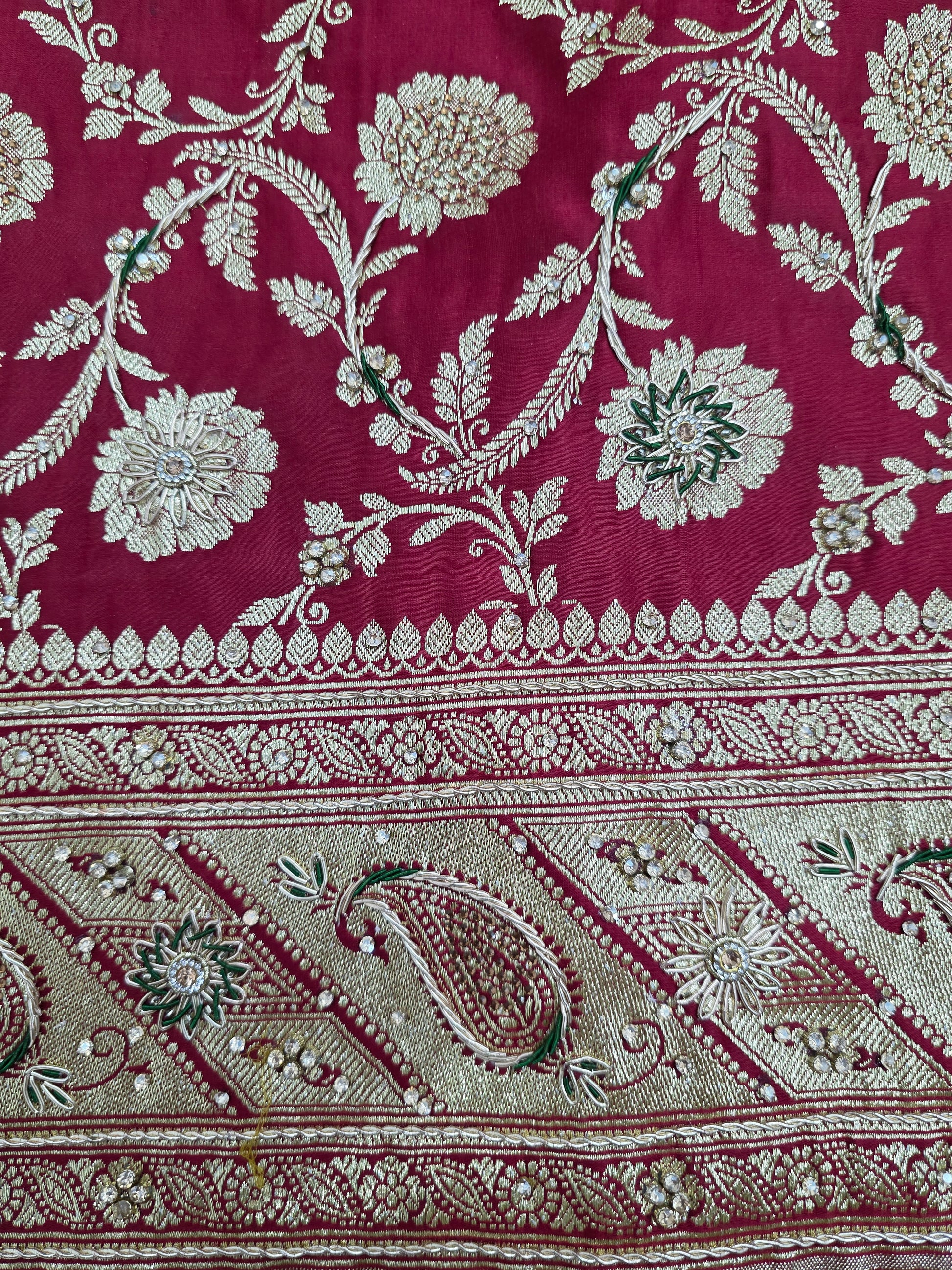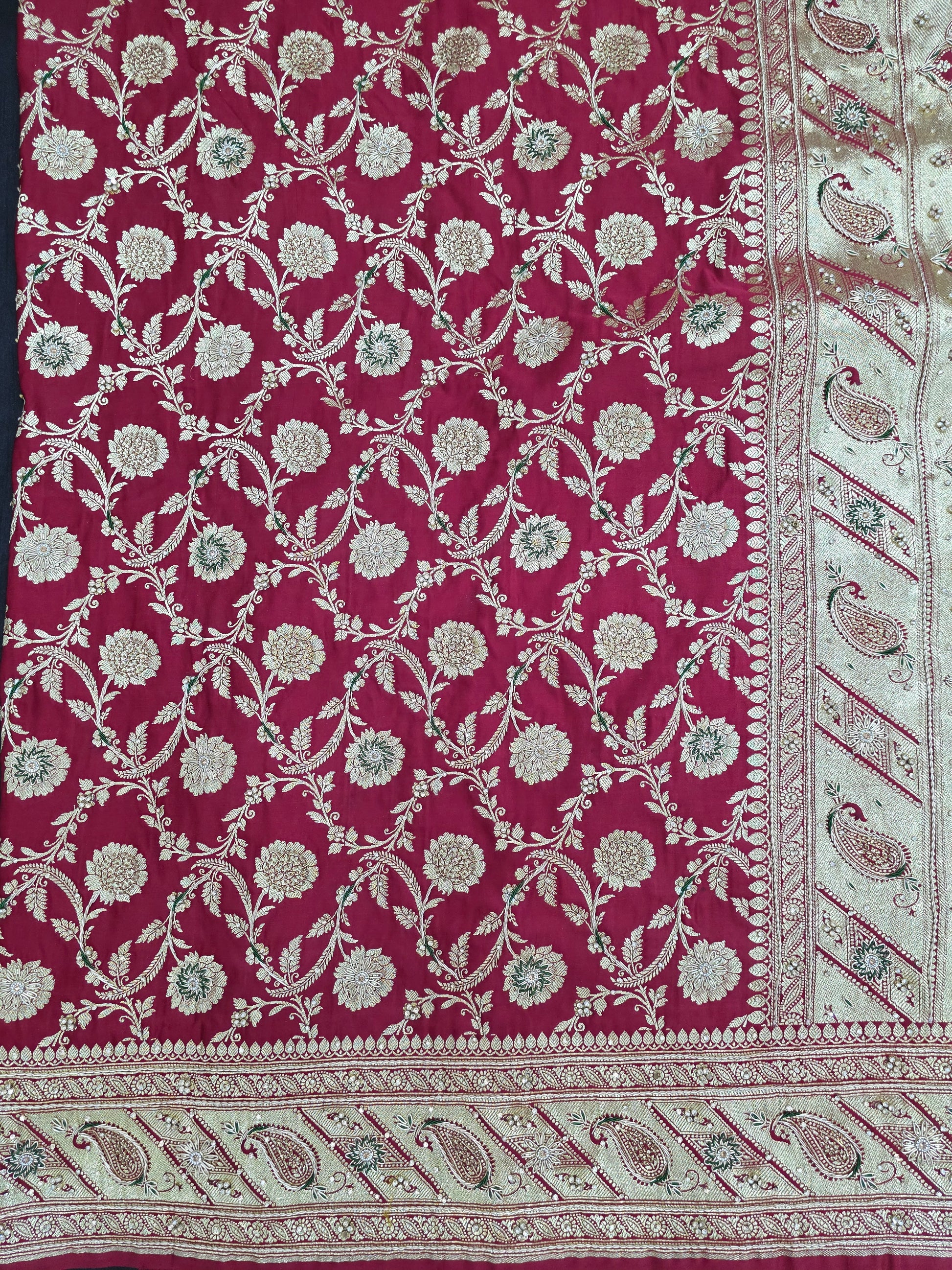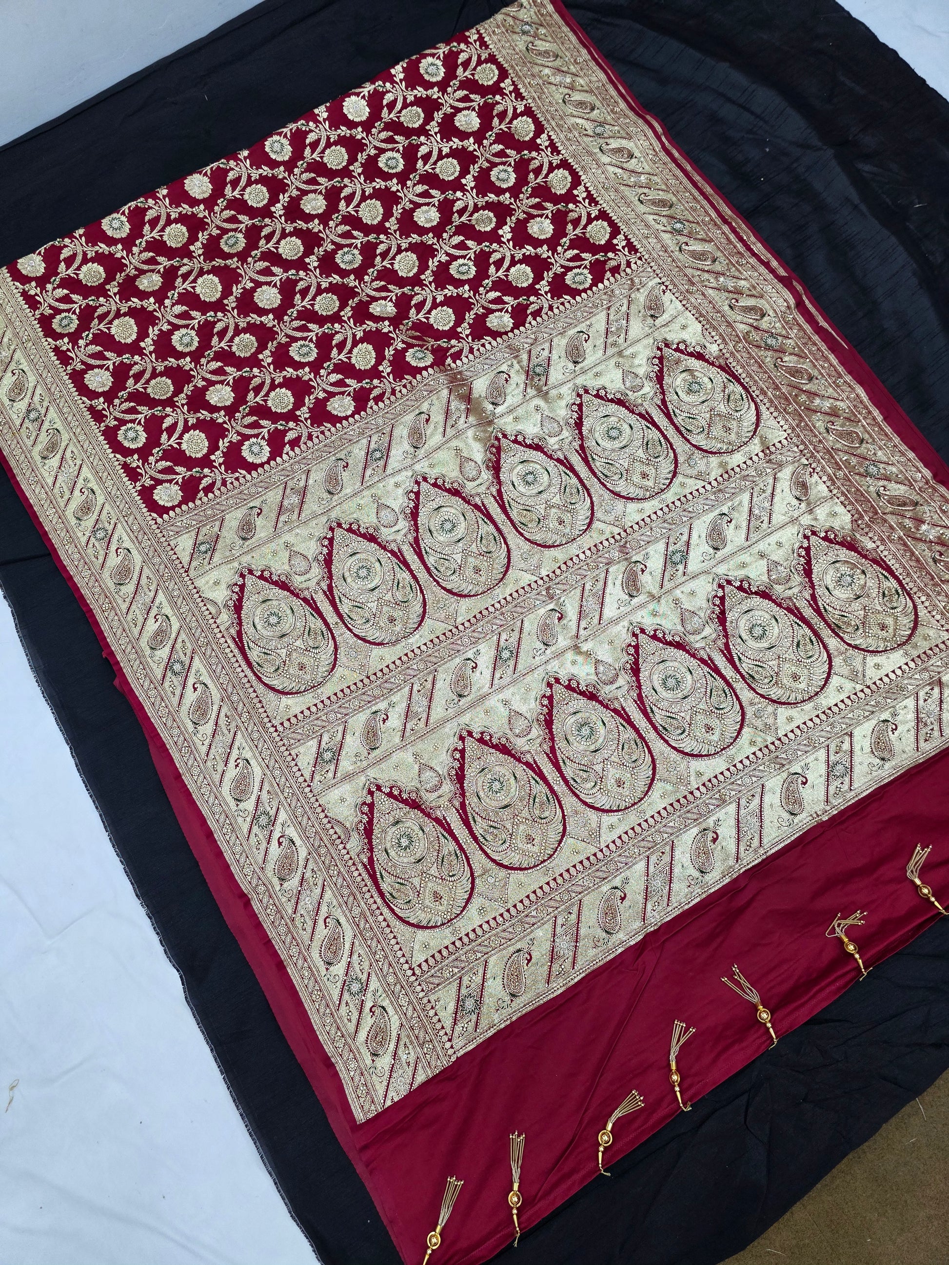 Maroon Zardozi Zarkan Banarasi Katan Saree