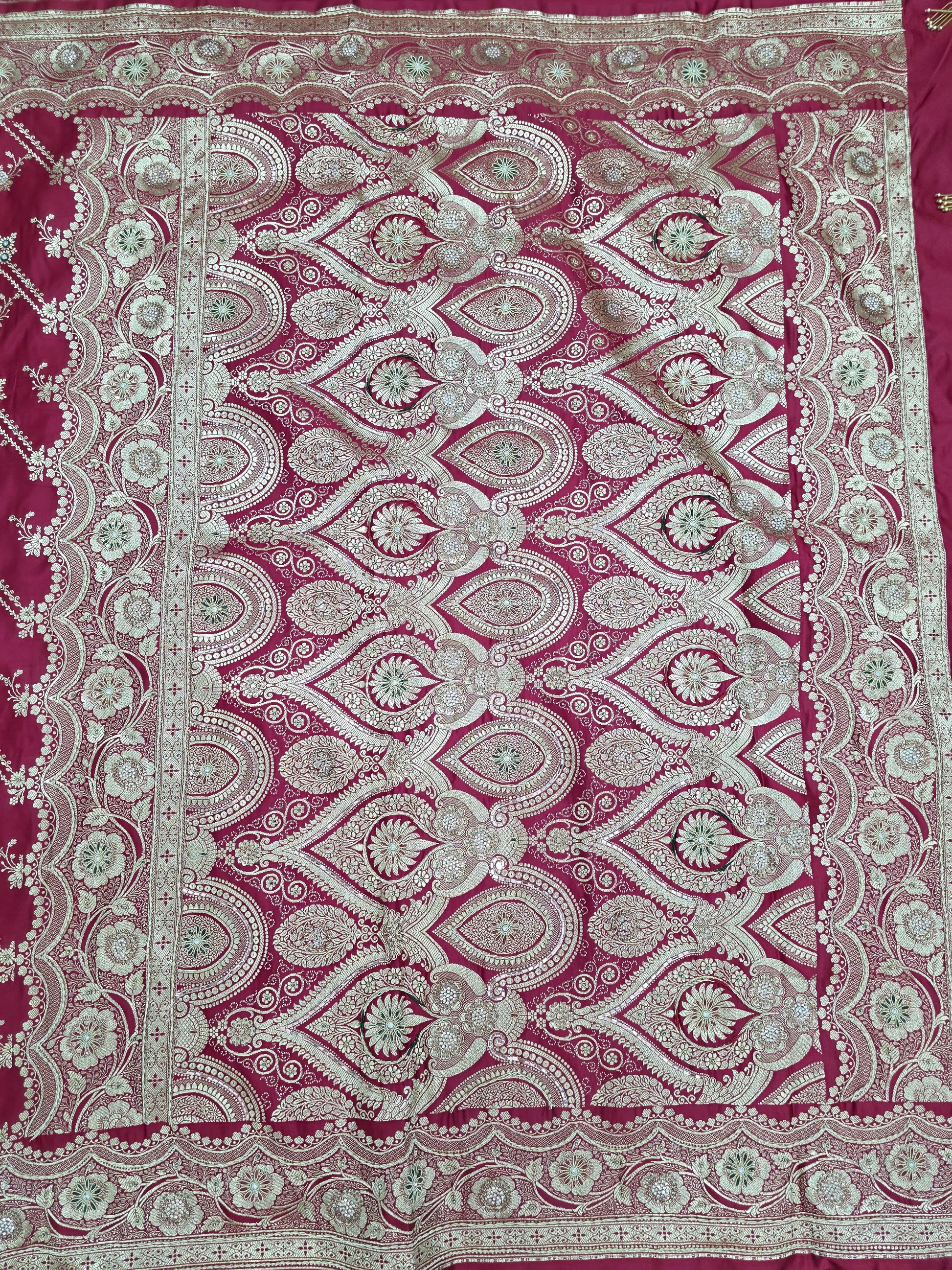 Maroon Zardozi Zarkan Banarasi Katan Saree