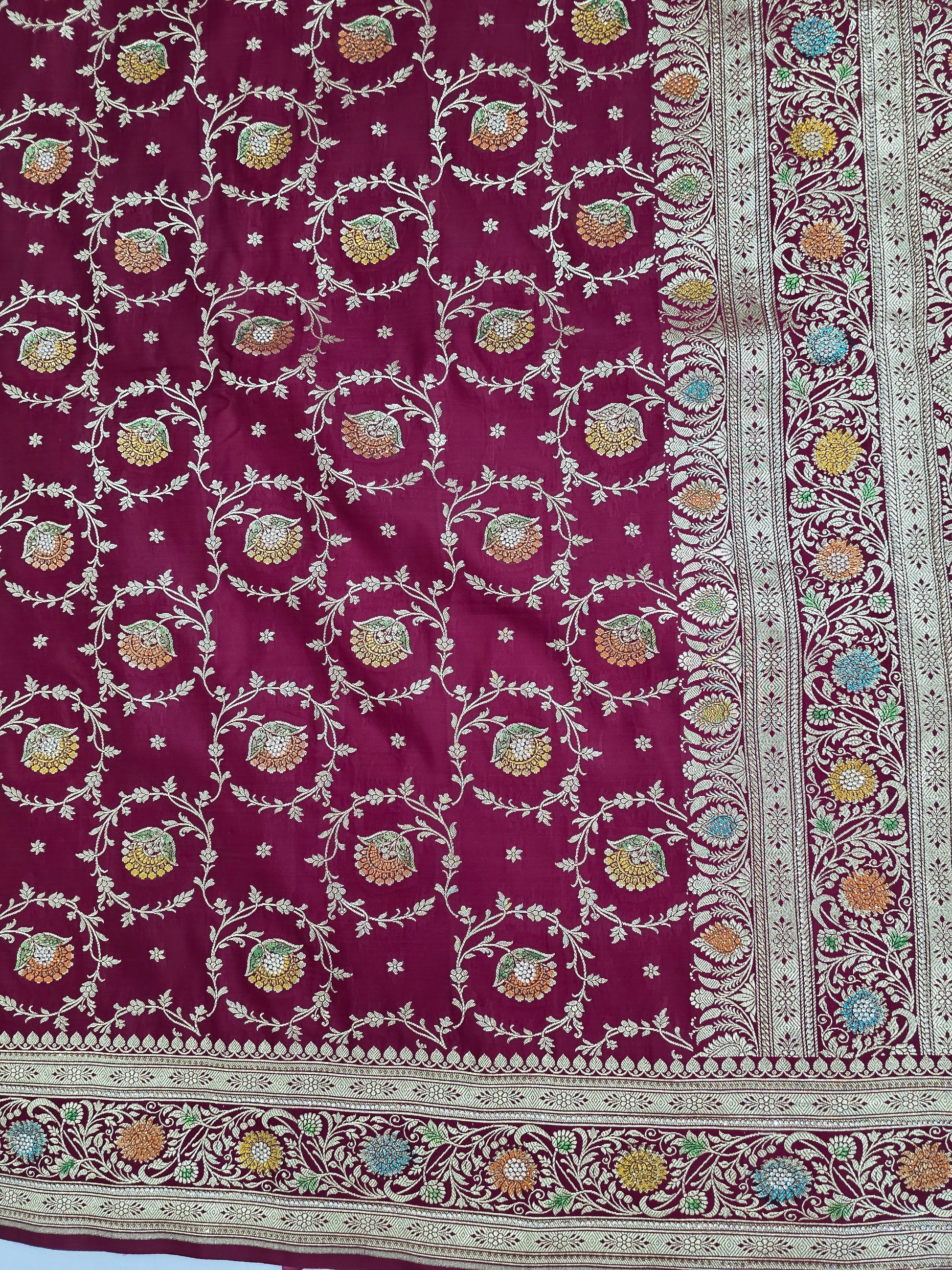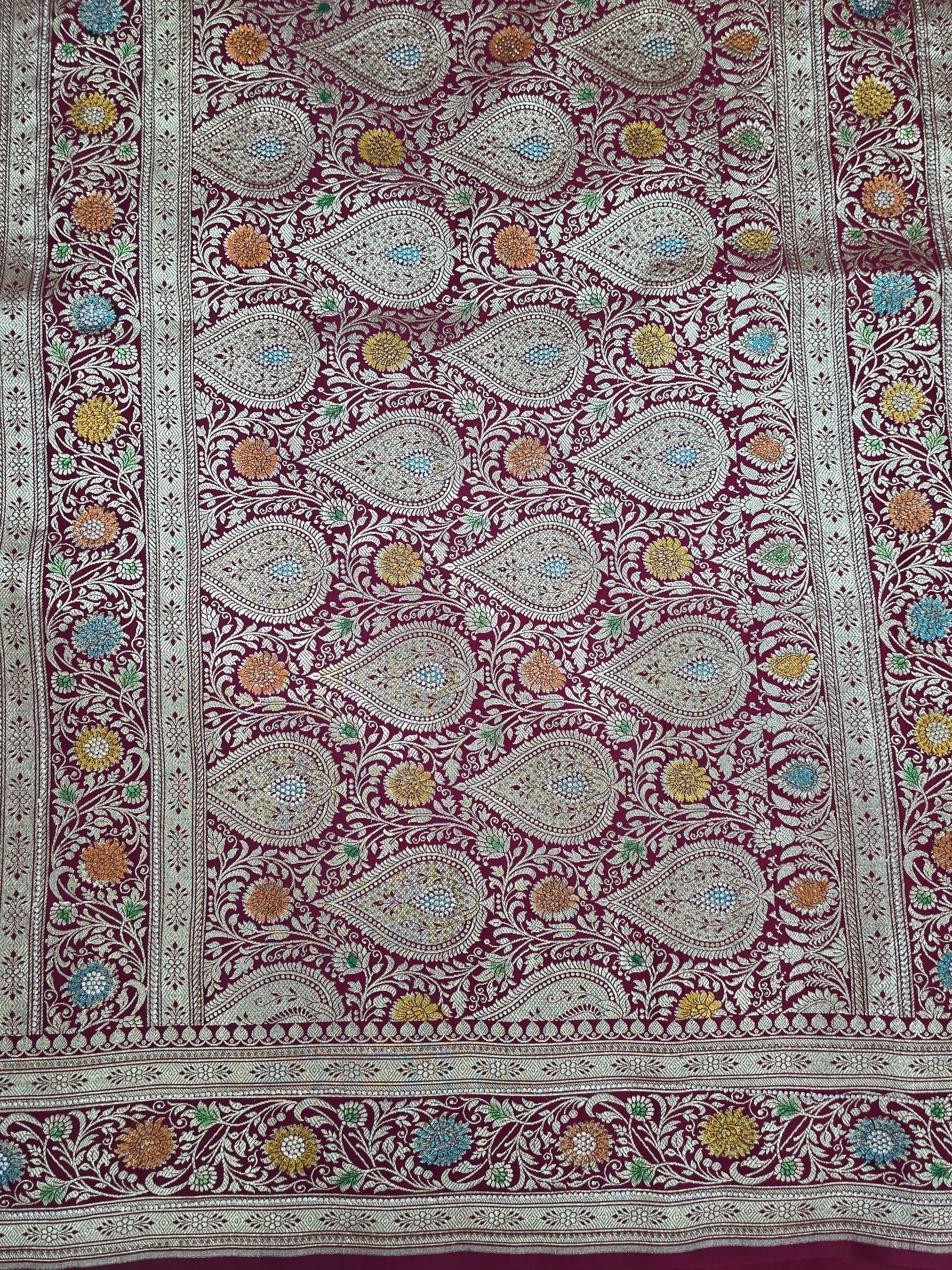 Maroon Zarkan swarovski Banarasi Katan Saree