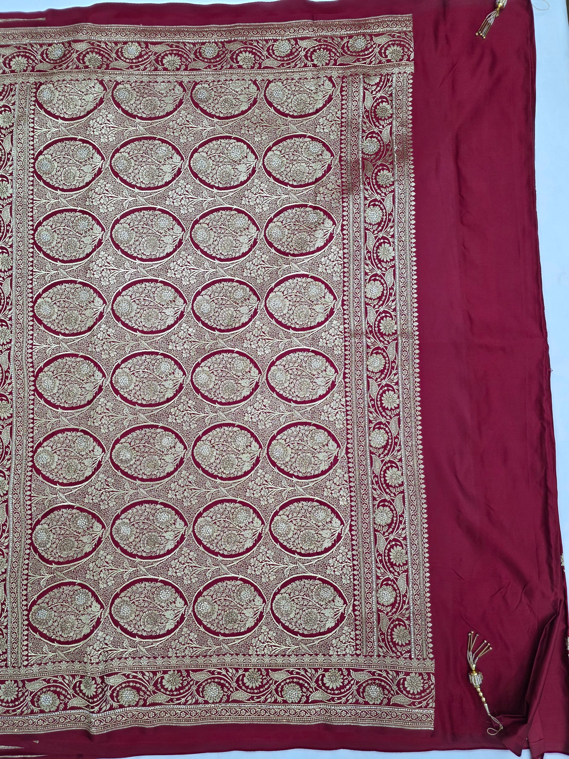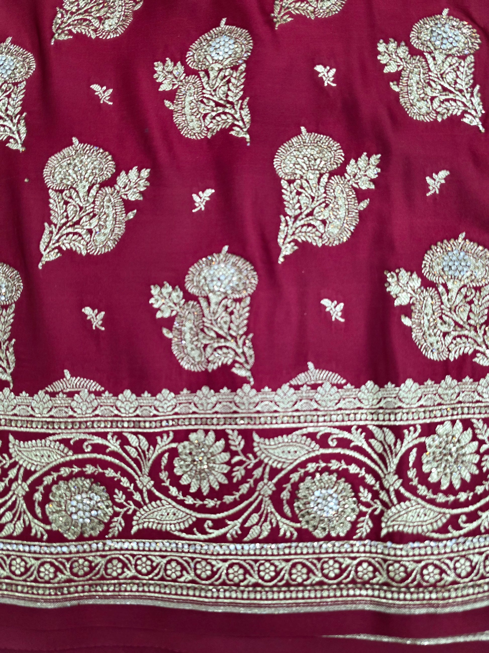 Maroon Zarkan Swarovski Banarasi Saree