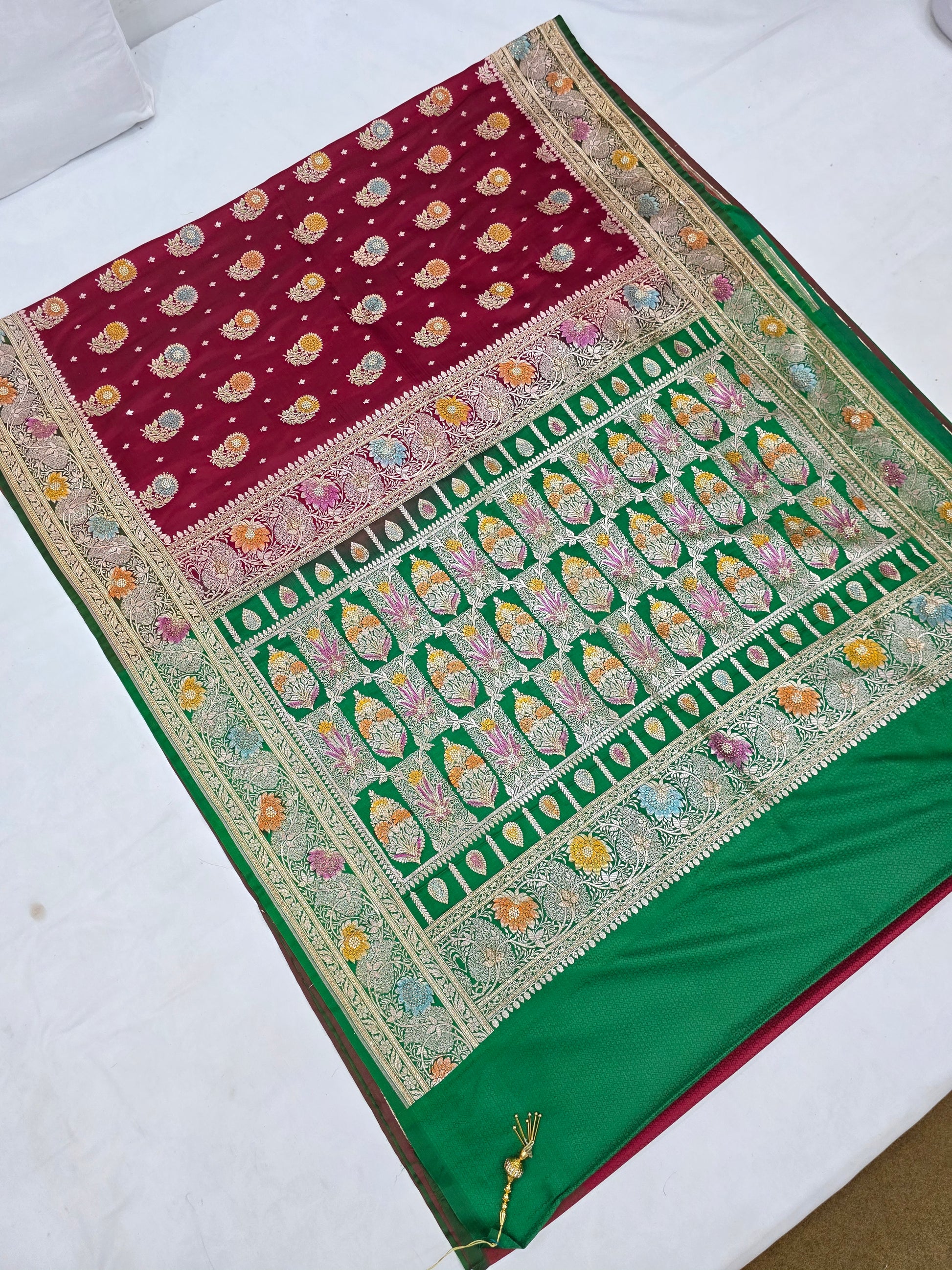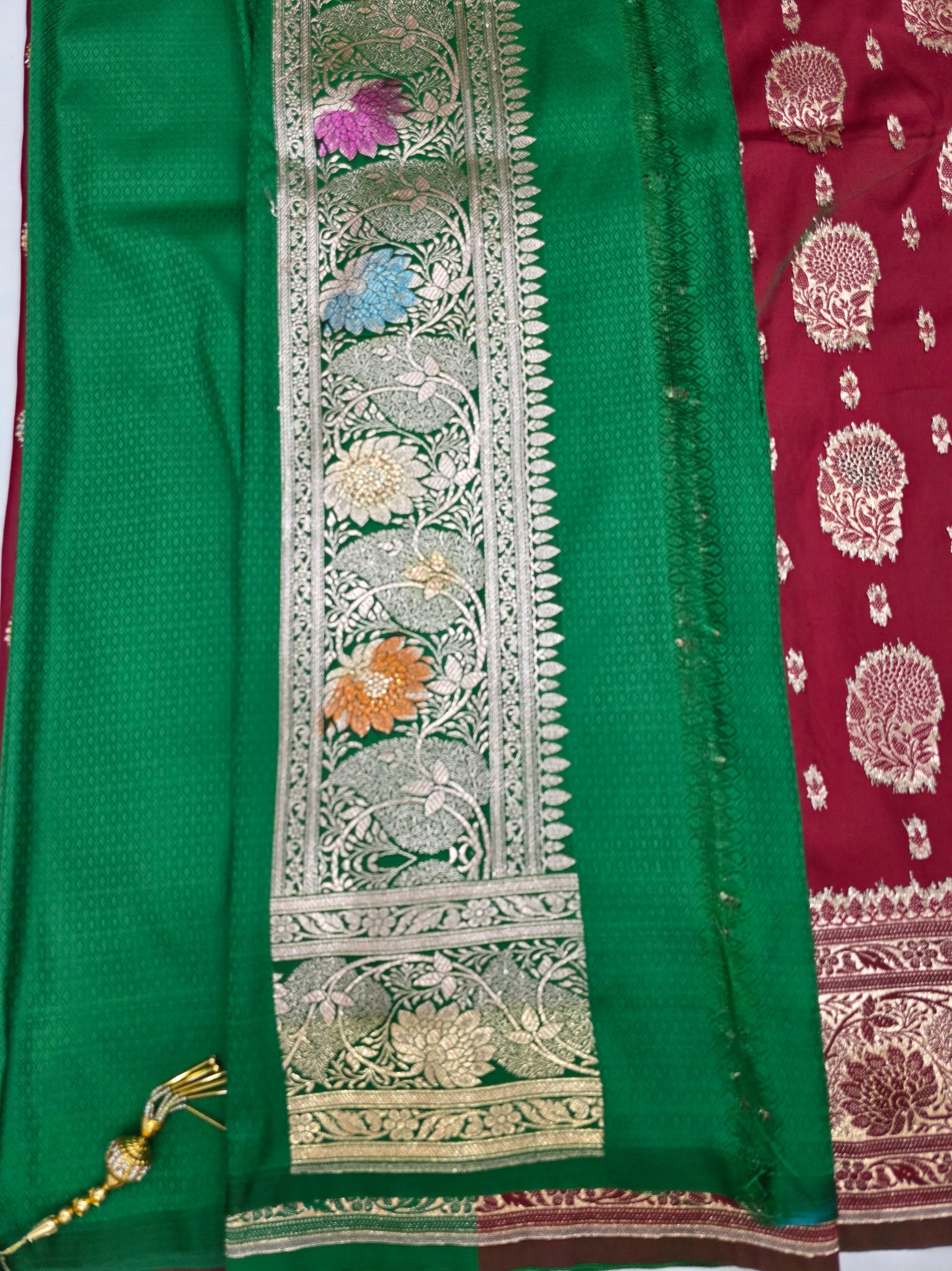 Maroon Zarkan Swarovski Banarsi Katan saree