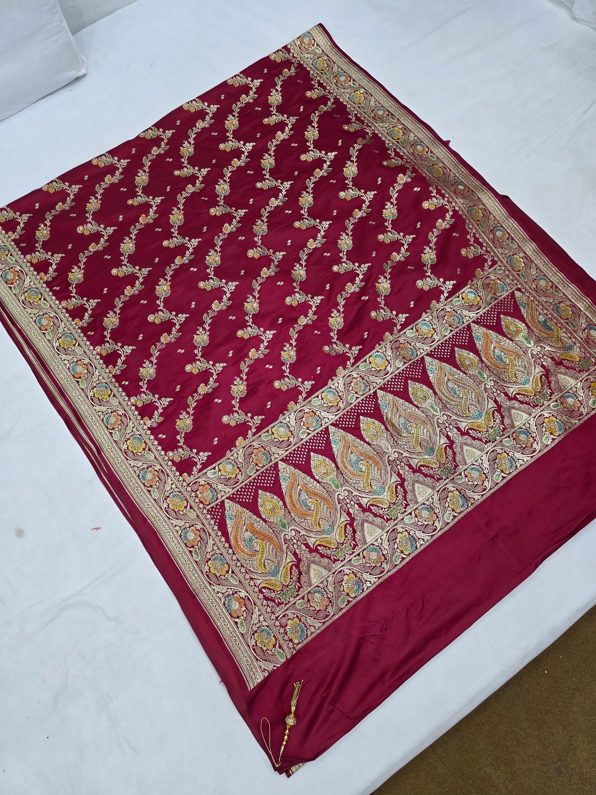 Maroon Zarkan Swarovski Banarsi Katan Saree