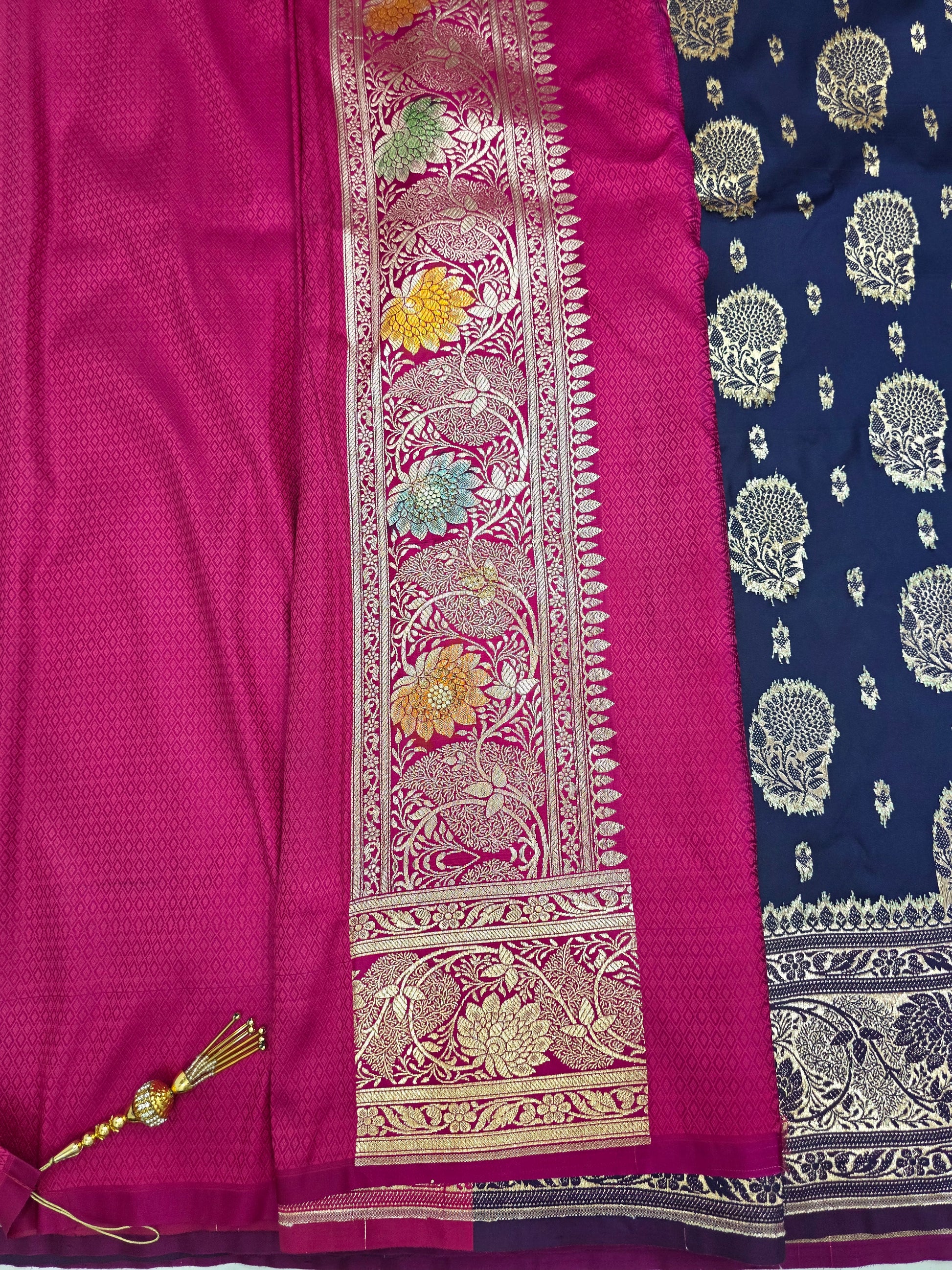 Navy Zarkan Swarovski Banarasi Katan Saree