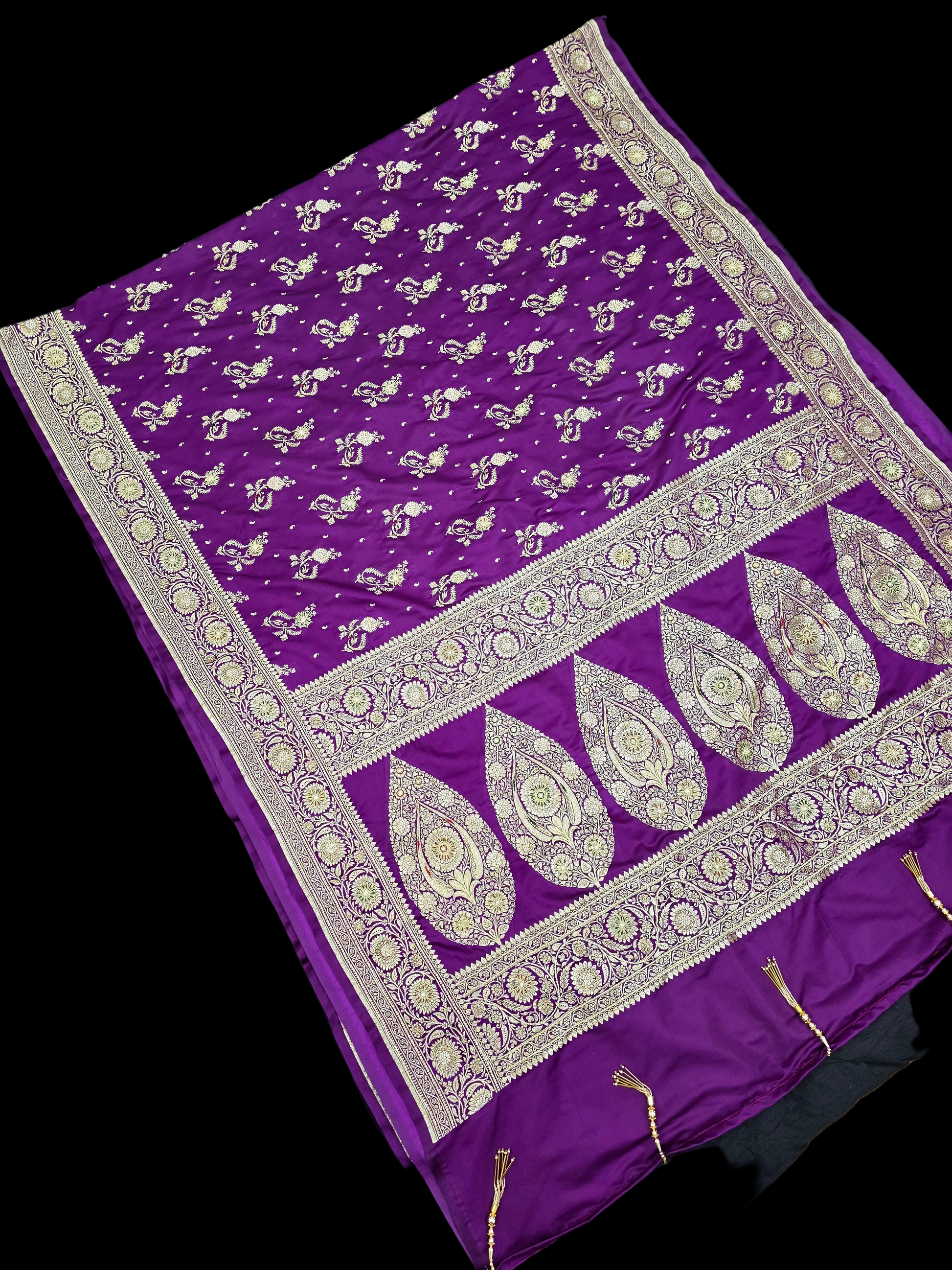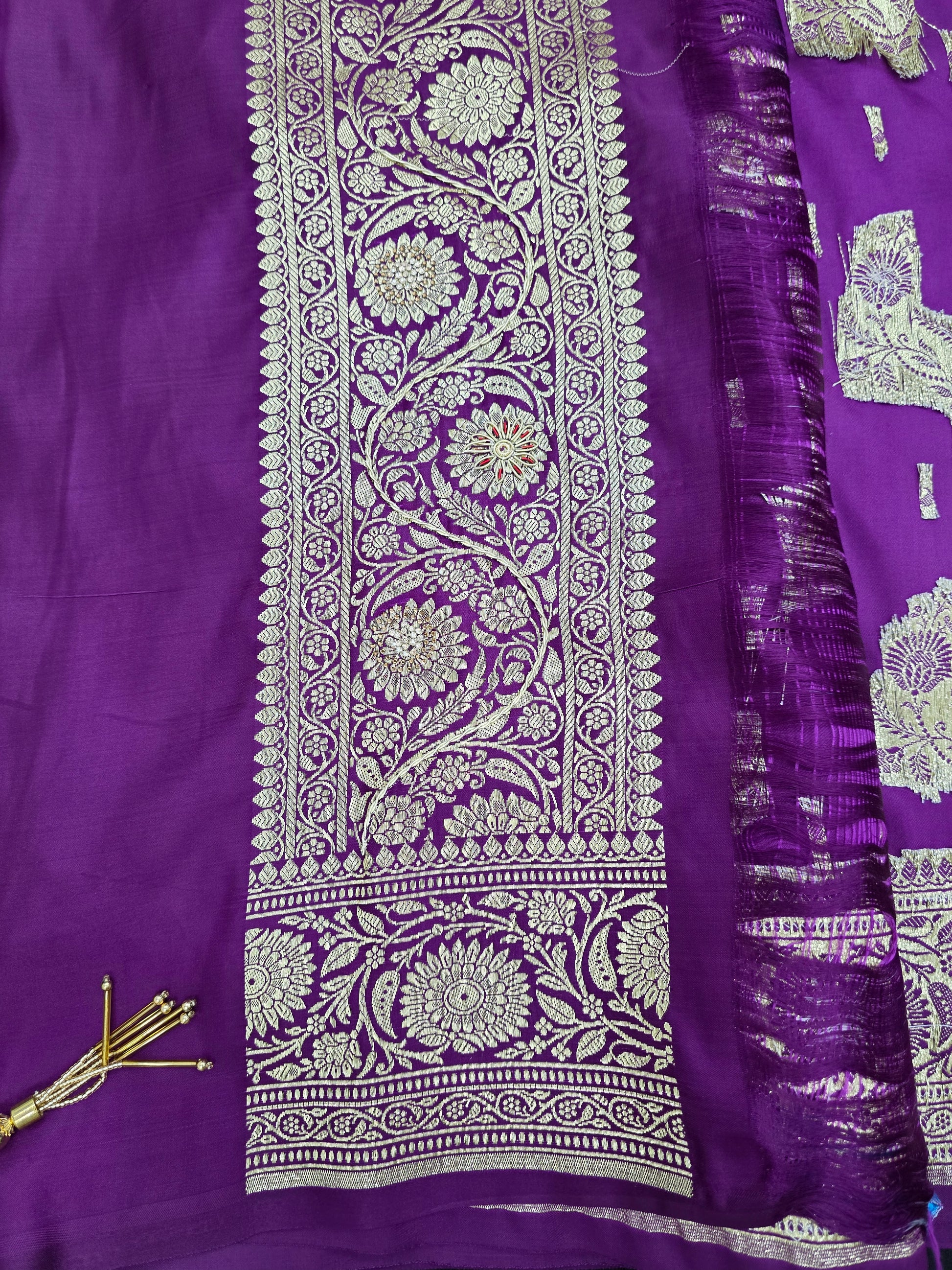 Purple Zardozi Zarkan Banarasi Katan Saree