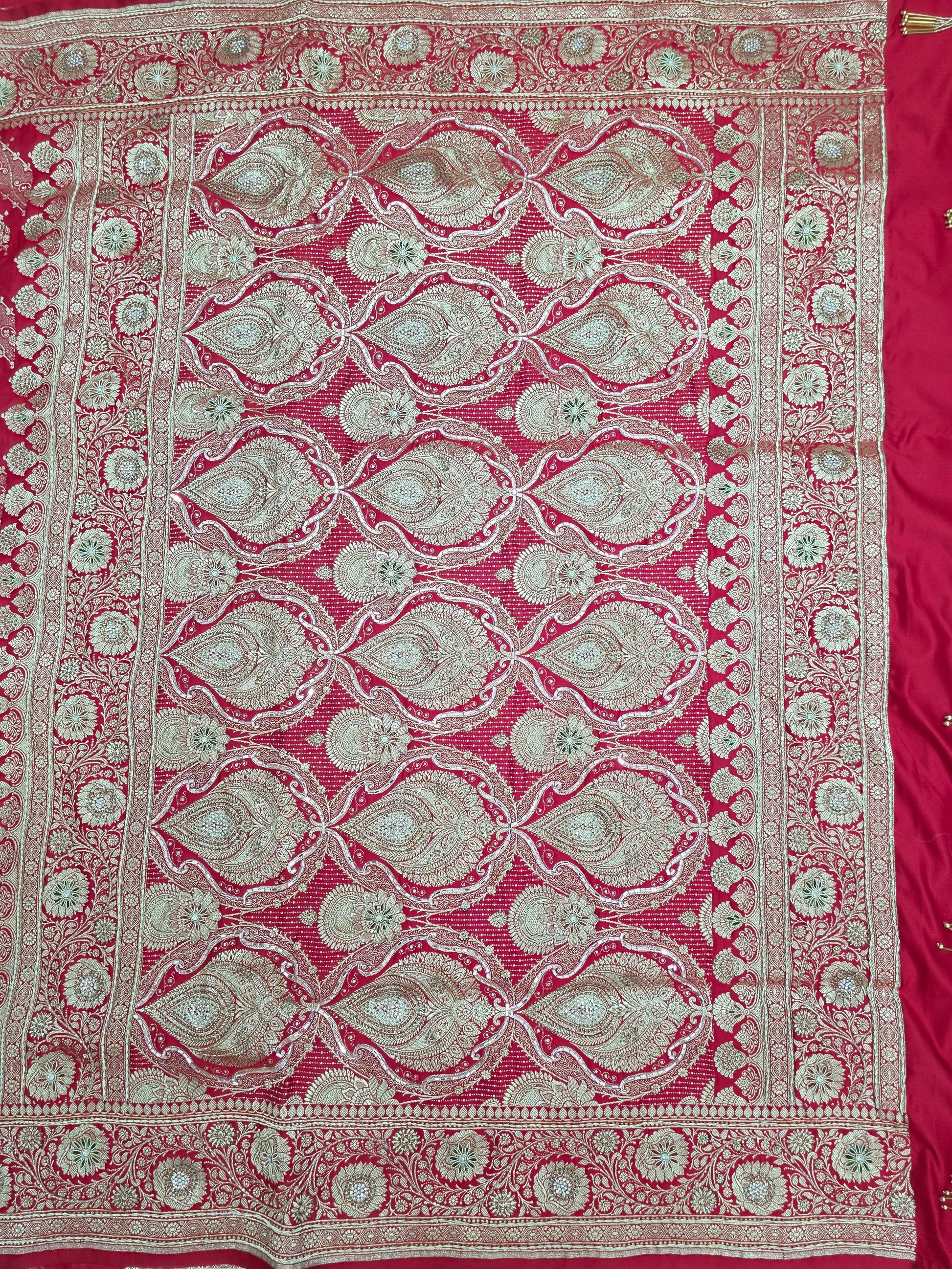 Red Zardozi Zarkan Banarasi Katan Saree