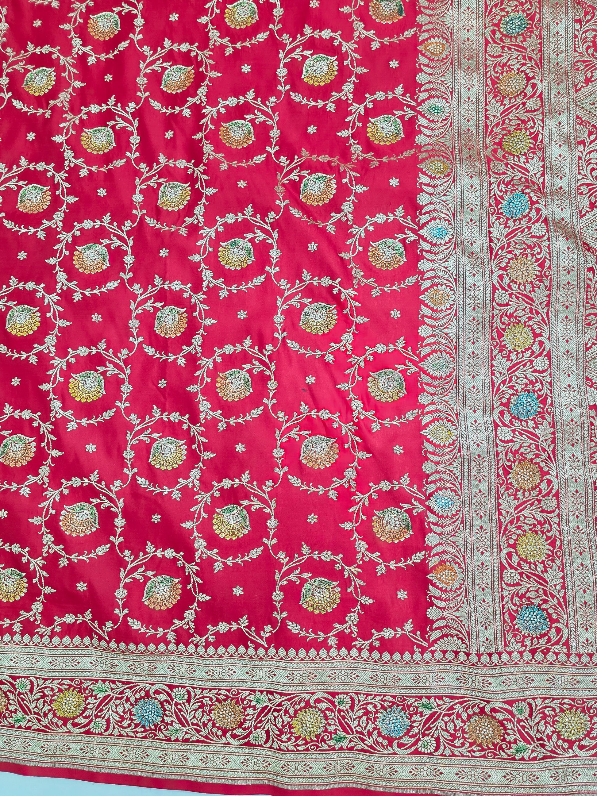 Red Zarkan swarovski Banarasi Katan Saree