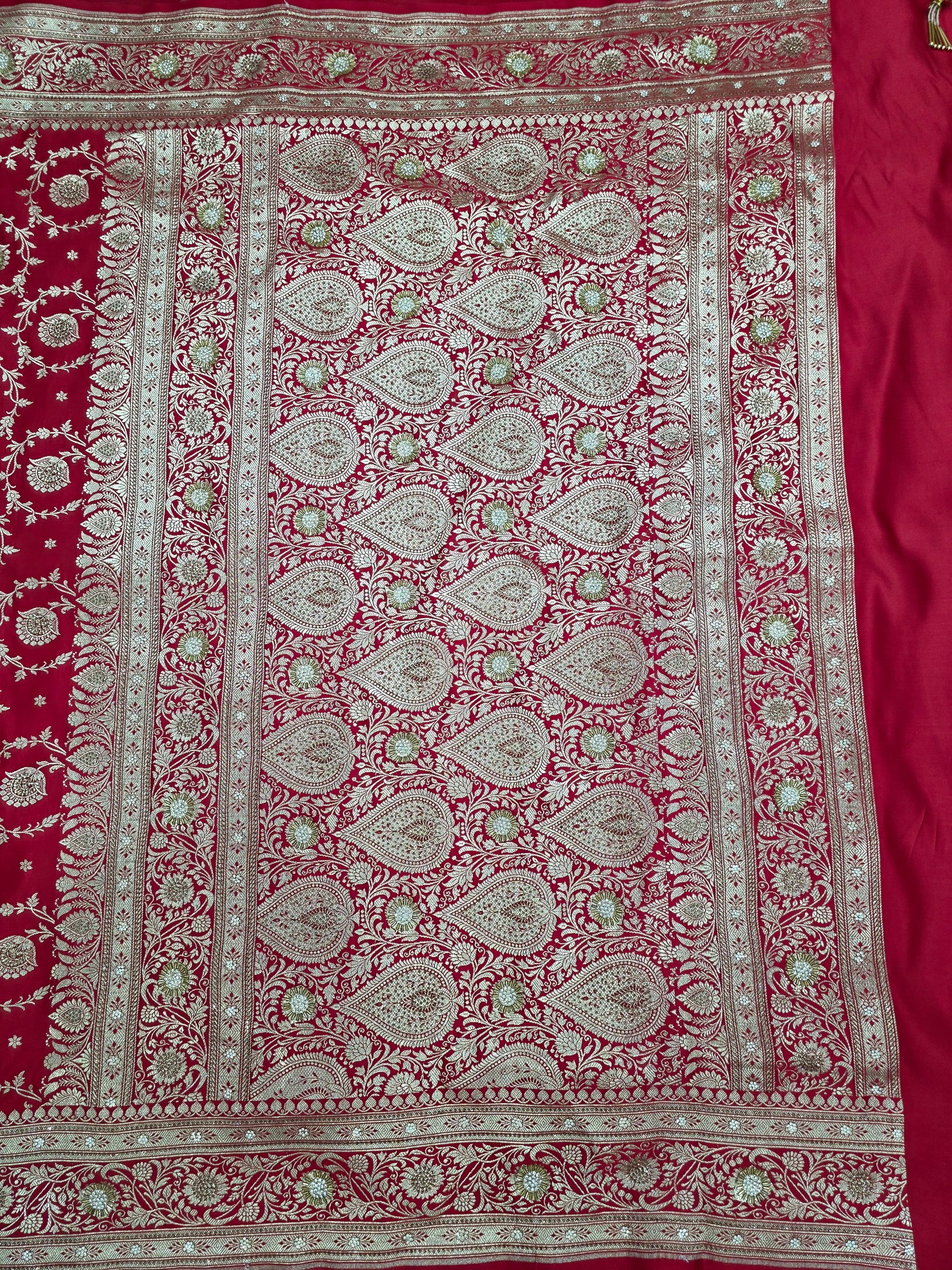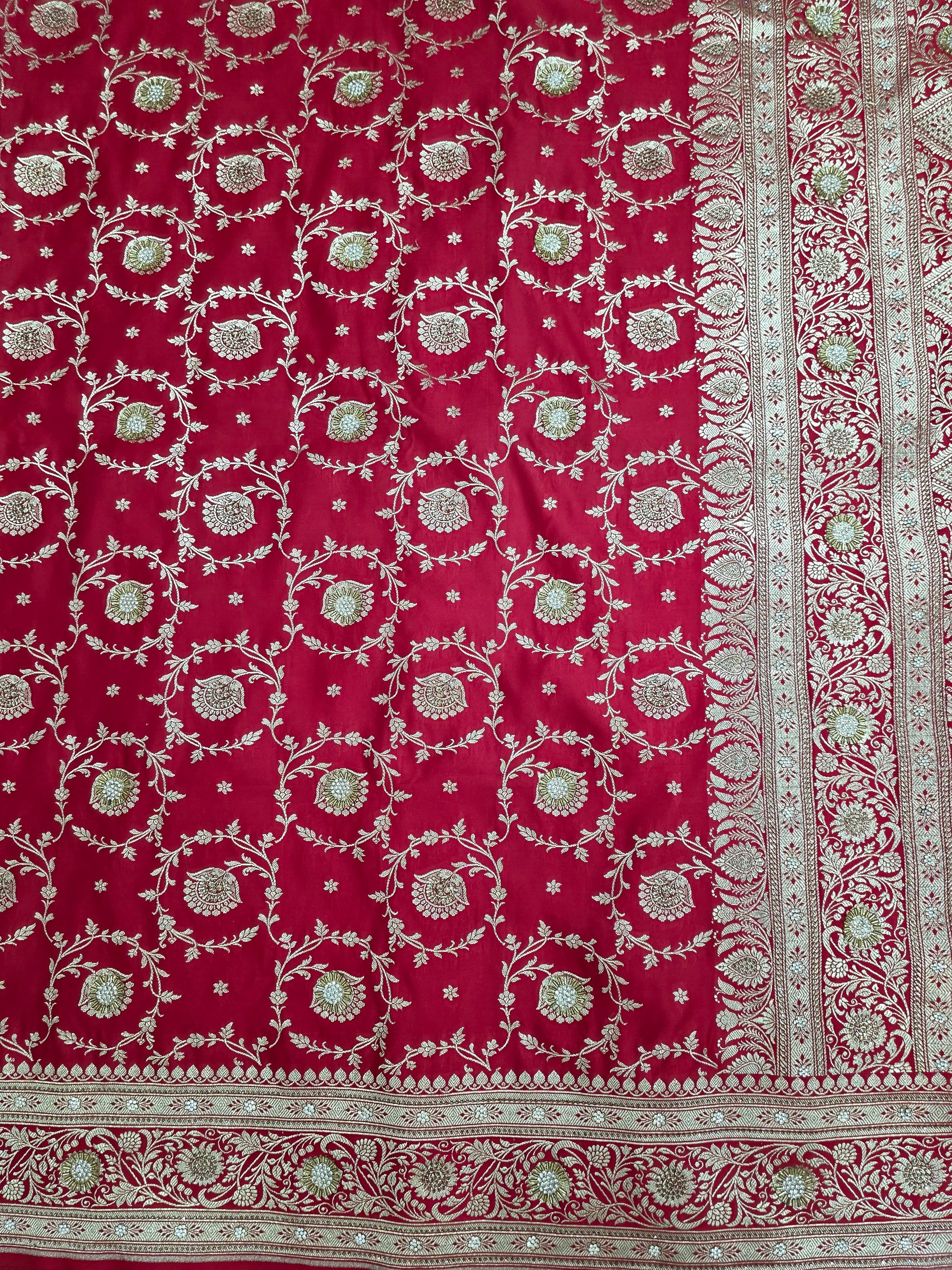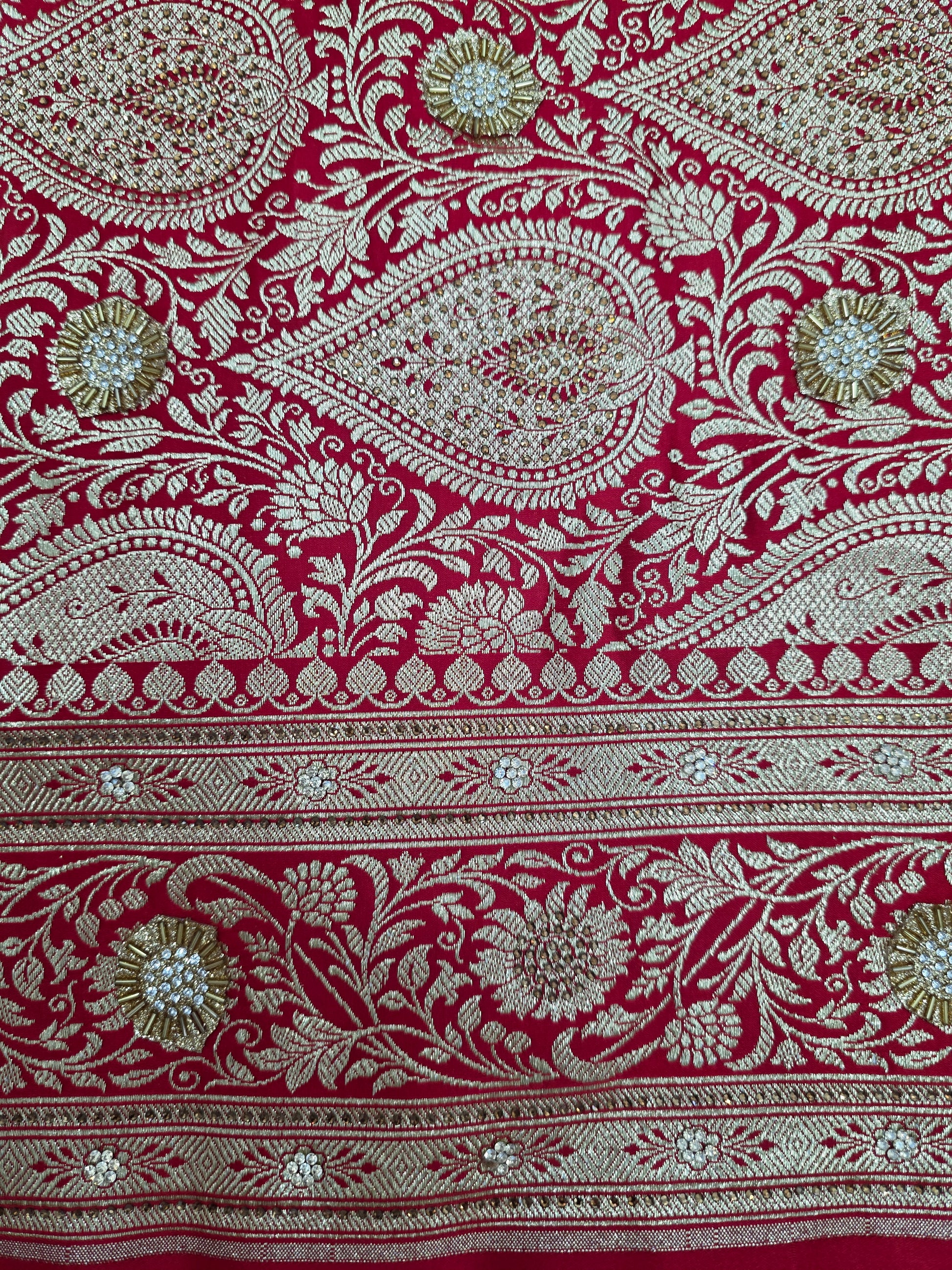 Red Zarkan Swarovski Banarasi Katan SareeAZ-SR-0019-RD