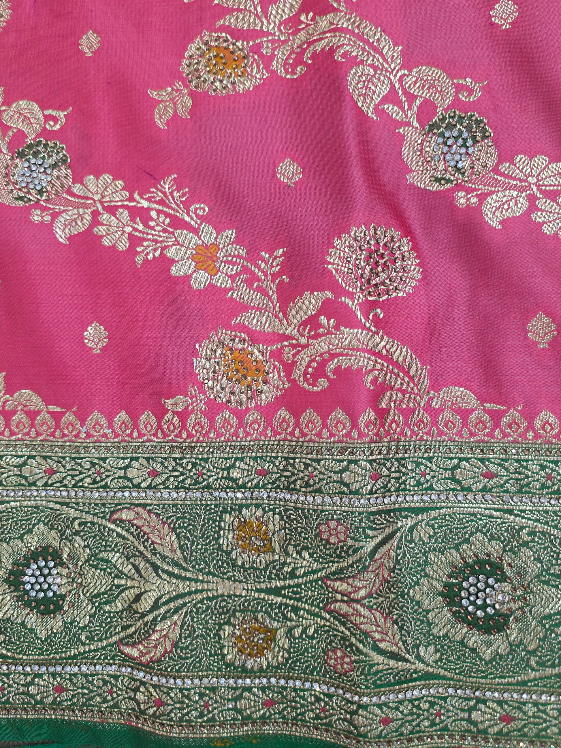 Strawberry Zarkan Swarovski Banarasi katan saree
