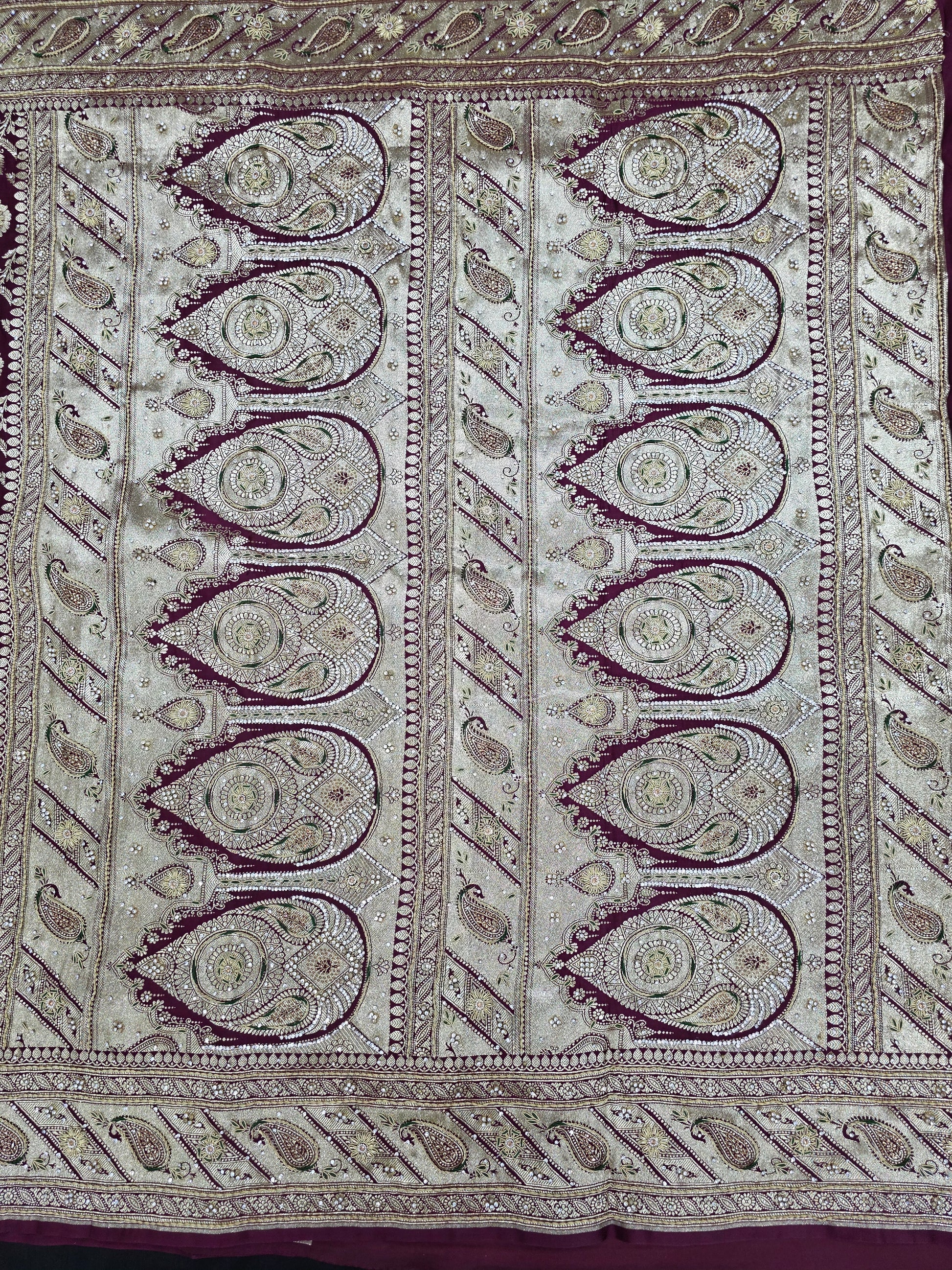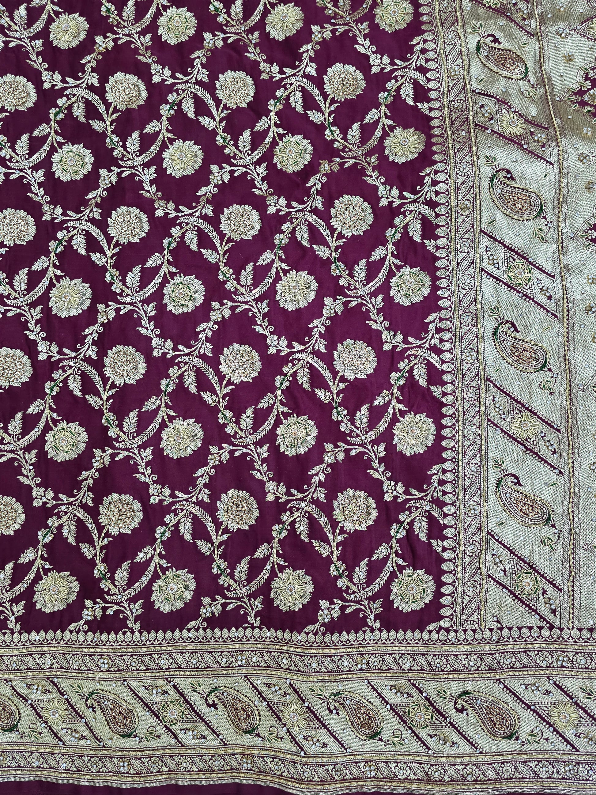 Wine Zardozi Zarkan Banarasi Katan Saree