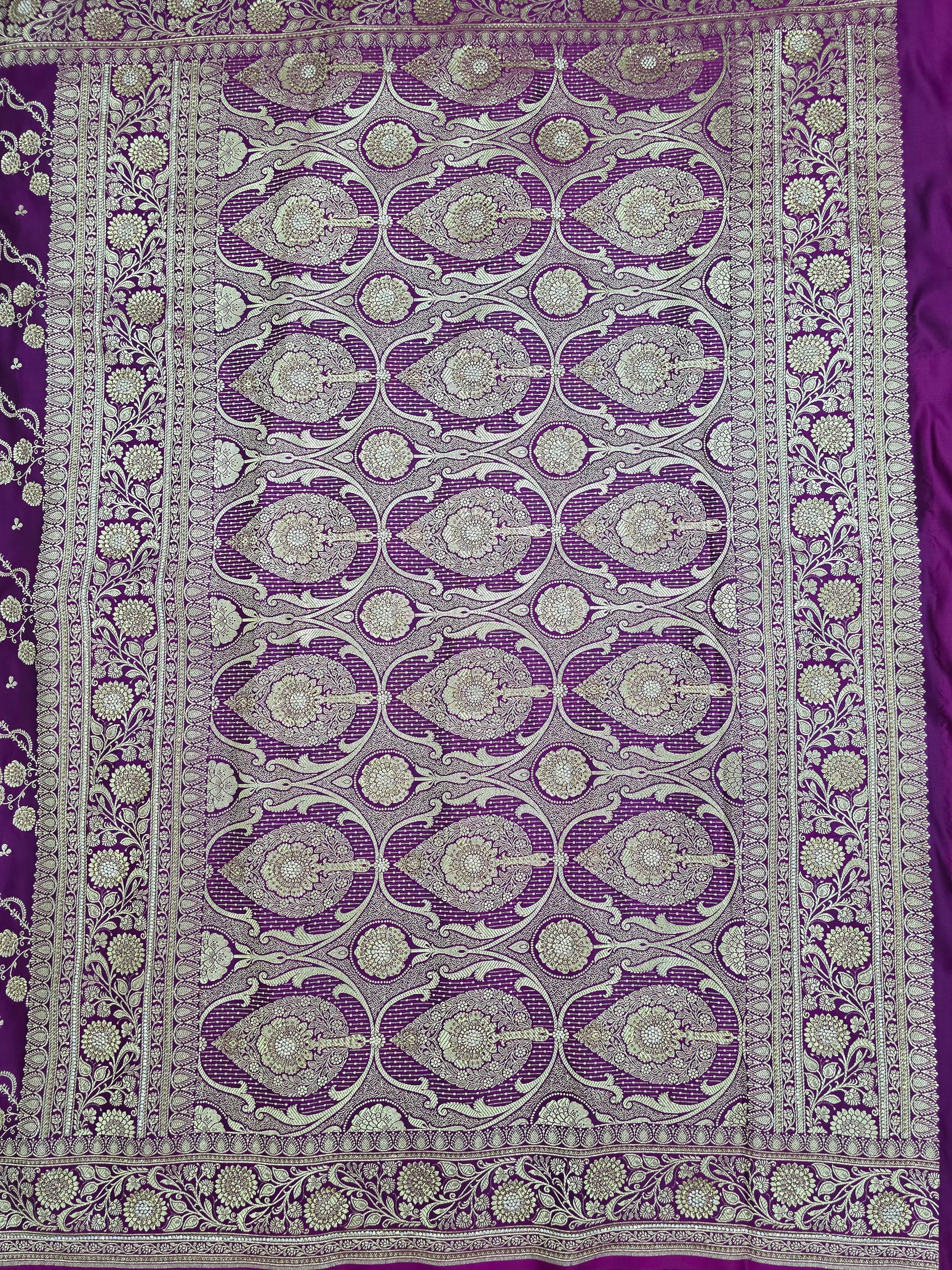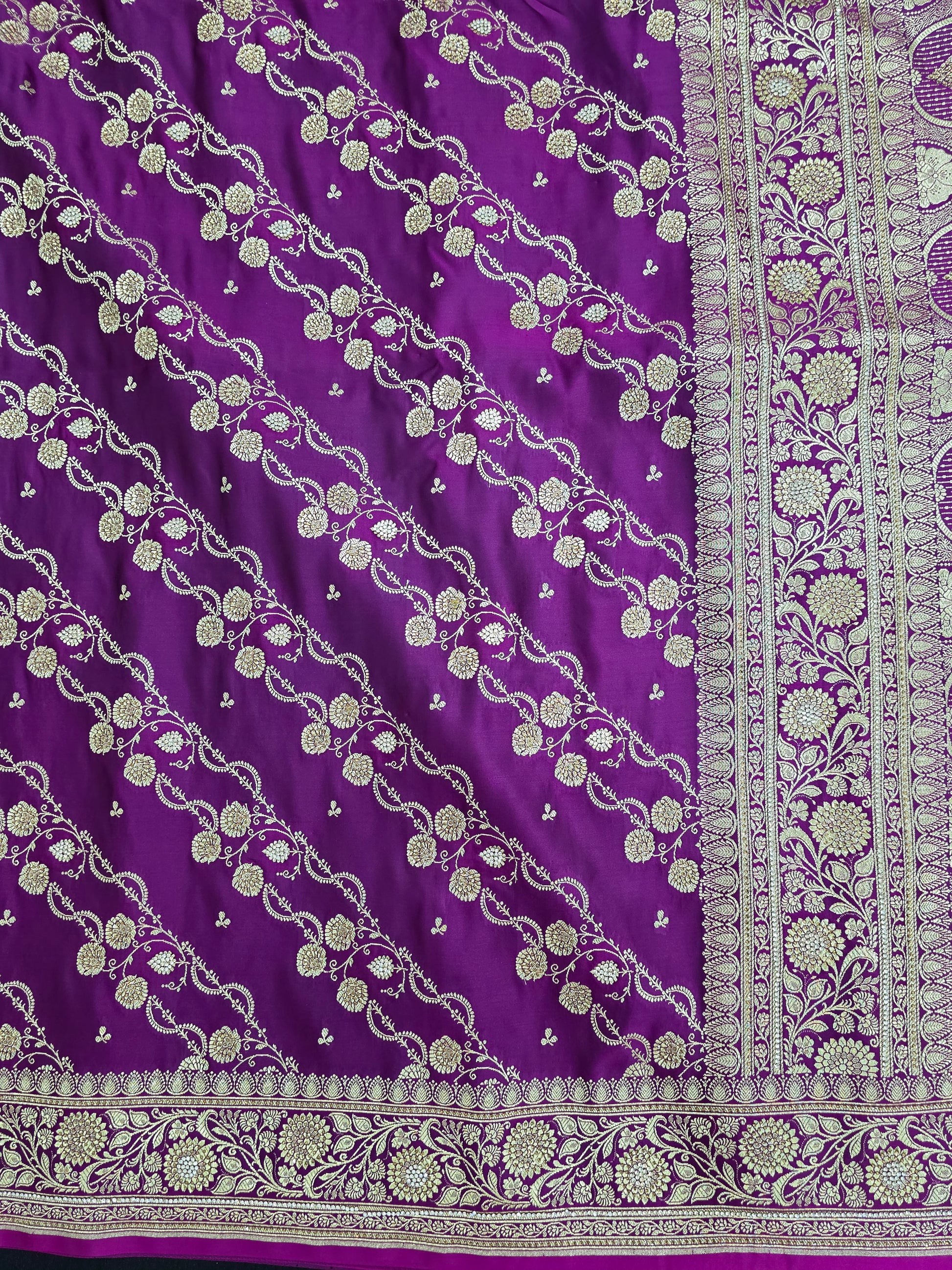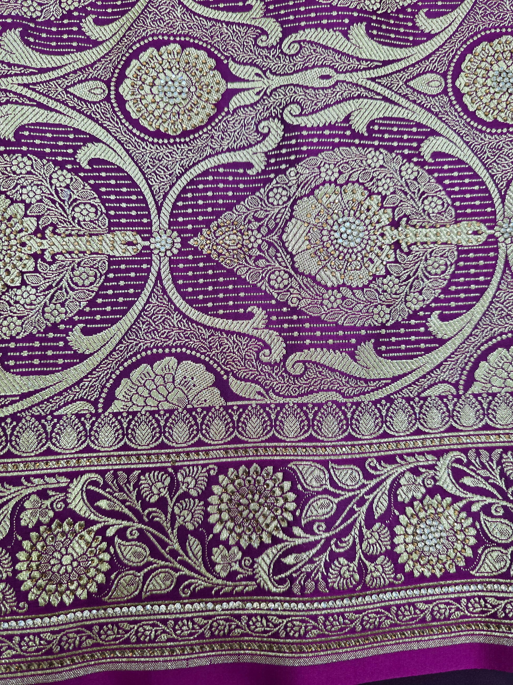 Purple Zarkan Swarovski Banarasi Katan Saree